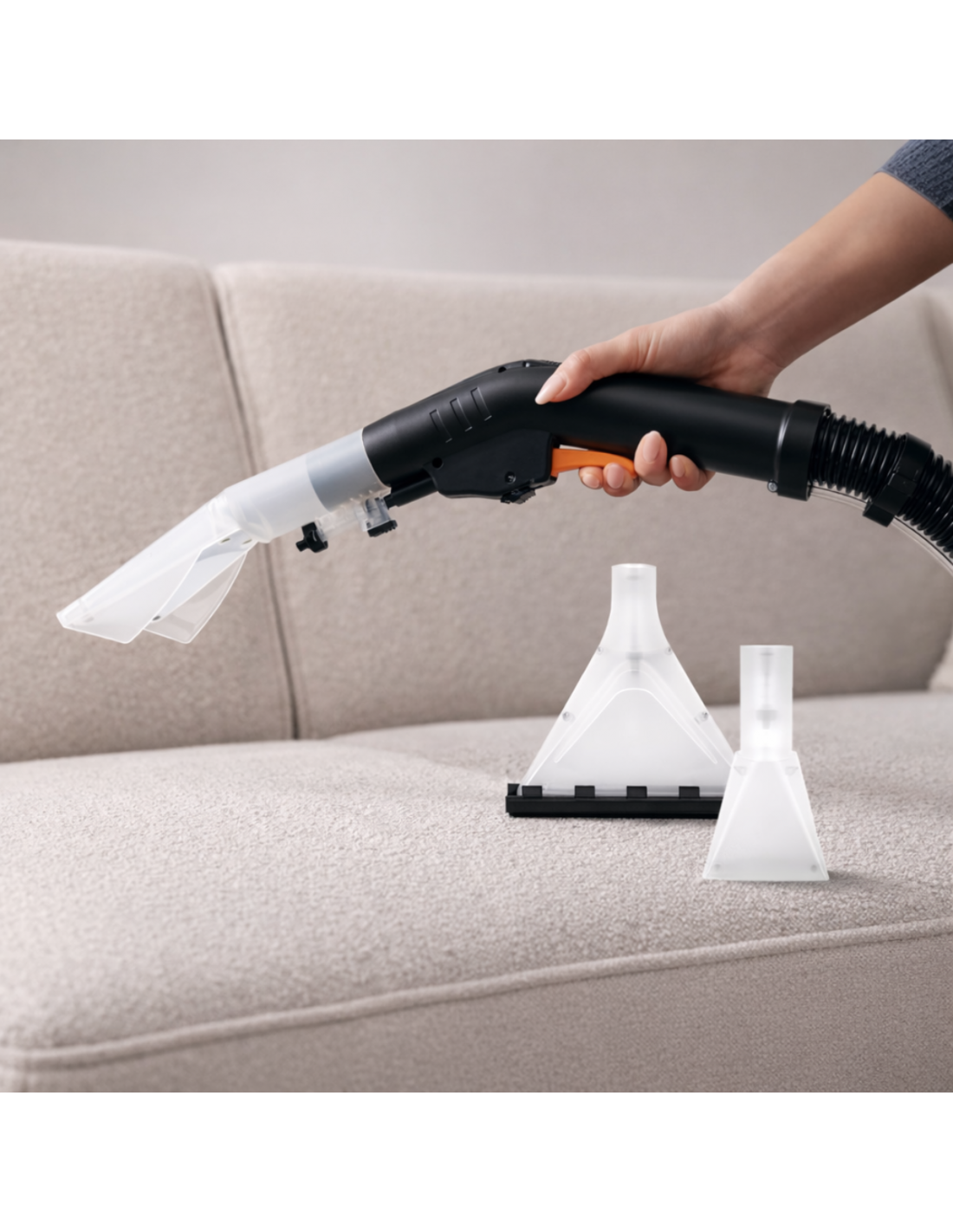 Equipada com uma mangueira extra longa de 1,5 metros e um cabo de 4 metros, a Ultra Clean 1400 oferece a mobilidade necessária para alcançar cantos difíceis. O kit inclui 3 escovas especializadas e um bocal para frestas, garantindo o acessório certo para cada tipo de superfície.