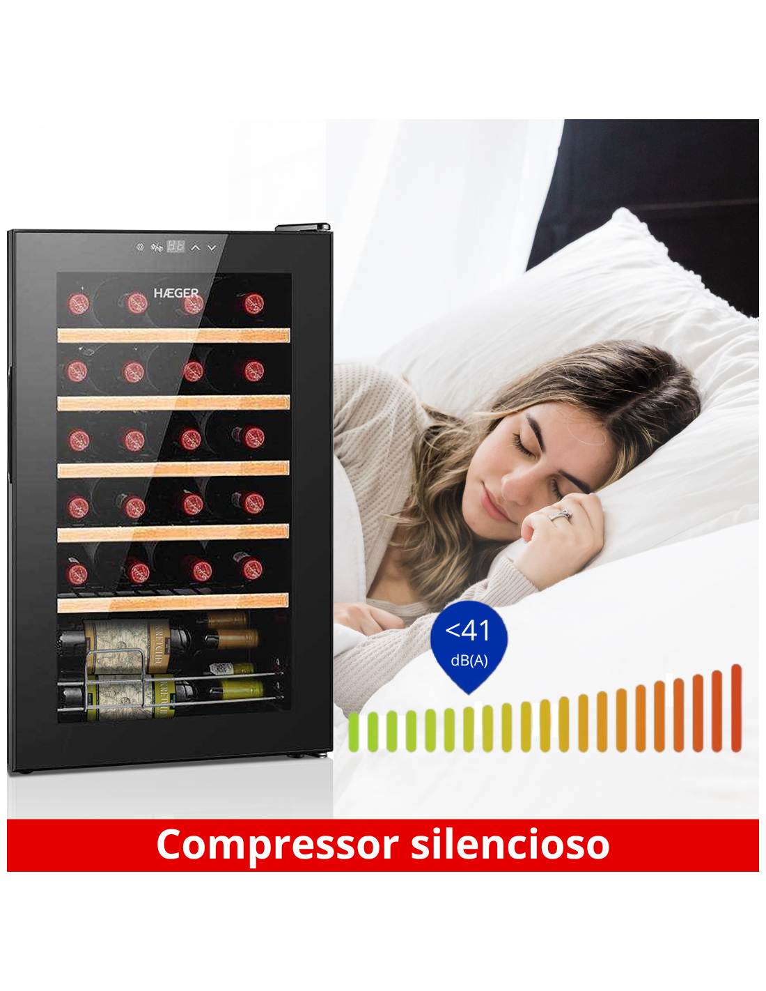 Cave de Vinhos HAEGER Chateaux 24 - 24 Garrafas, Luz Interior, 6º C - 20º C, Silencioso, Classe G