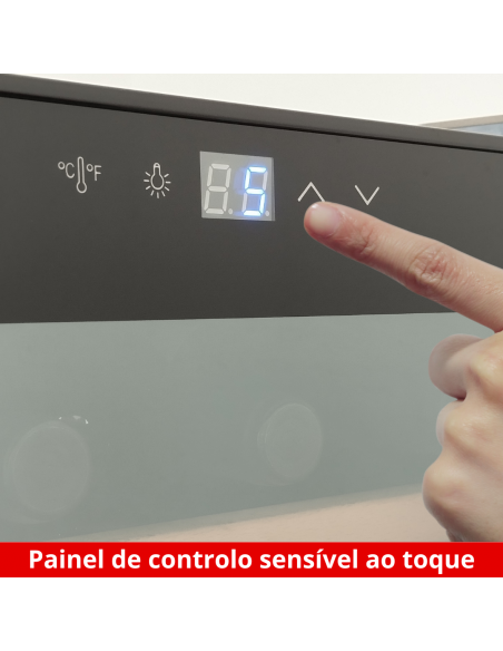 Com o painel de controlo sensível ao toque, ajustar a temperatura entre 6 e 20º C torna-se um gesto simples. O visor em LED azul oferece uma leitura fácil e rápida, permitindo um controlo total sobre as condições de armazenamento dos seus vinhos.