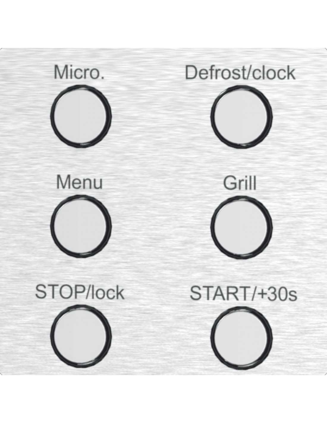 Micro, Grill, Menu, Defrost e bloqueio (Stop/lock).