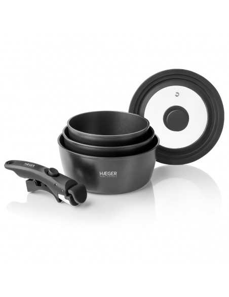 Conjunto de Panelas de Cozinha com Pega Amovível Easy Fit Pots - 5 Peças, Revestimento ILAG Non Stick