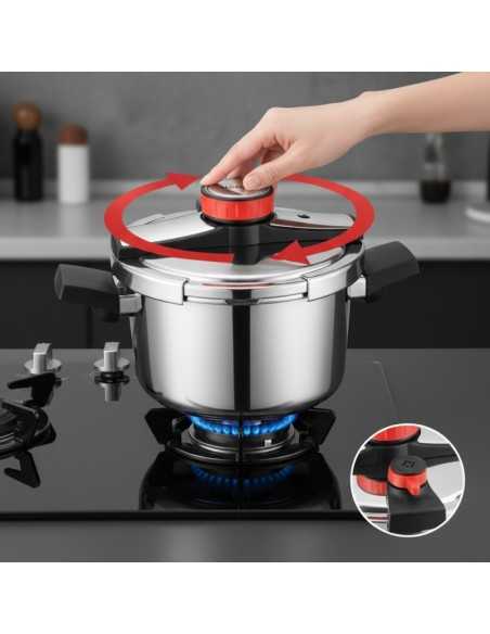 A panela de pressão HAEGER Easy Cooker é a solução ideal para preparar refeições rápidas e saborosas com total segurança. Com capacidade de 6 litros, este utensílio é equipado com 3 sistemas de segurança e é compatível com todos os tipos de fogões. O design em aço inoxidável de alta qualidade garante durabilidade e eficiência.