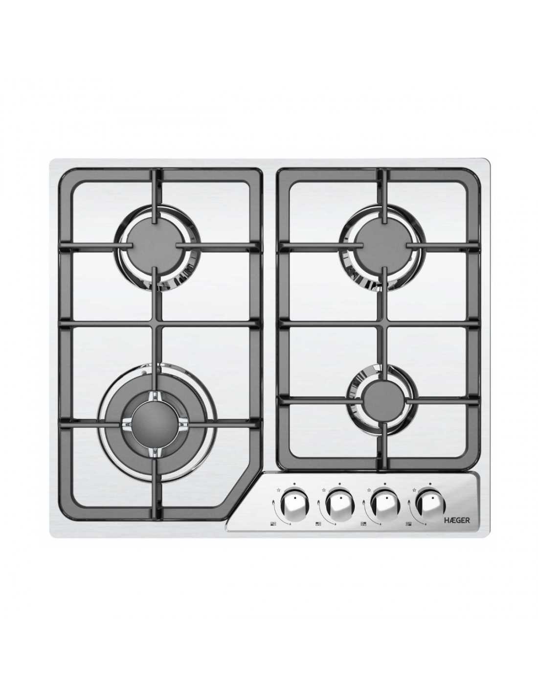 Placa de Gás de Encastre HAEGER PG-4GI.011A - 4 Queimadores + Wok, 60cm, INOX