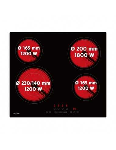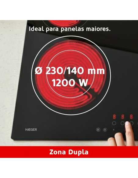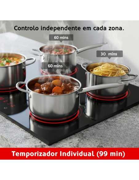 Com quatro zonas de aquecimento, incluindo uma zona dupla de maior dimensão, adapta-se a diferentes tamanhos de panelas e necessidades culinárias.