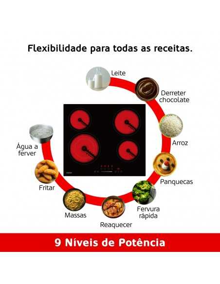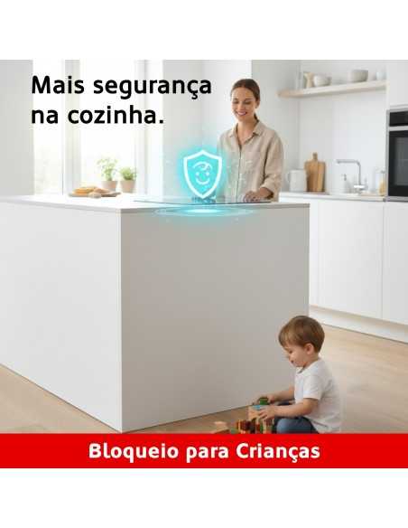 Com acabamento em vidro preto elegante e comandos táteis iluminados, é o complemento ideal para uma cozinha moderna e sofisticada.