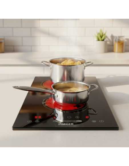 Com vidro preto de alta resistência e acabamento premium, a HAEGER Vitro Heat 3000 adapta-se perfeitamente a cozinhas pequenas, modernas e minimalistas.