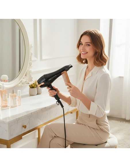 O HAEGER Turbo Dryer 2000 é a escolha ideal para quem procura uma secagem rápida, eficaz e com controlo total de temperatura. Equipado com um motor DC de 2000 watts, assegura um desempenho elevado, perfeito para utilização diária com resultados dignos de salão.