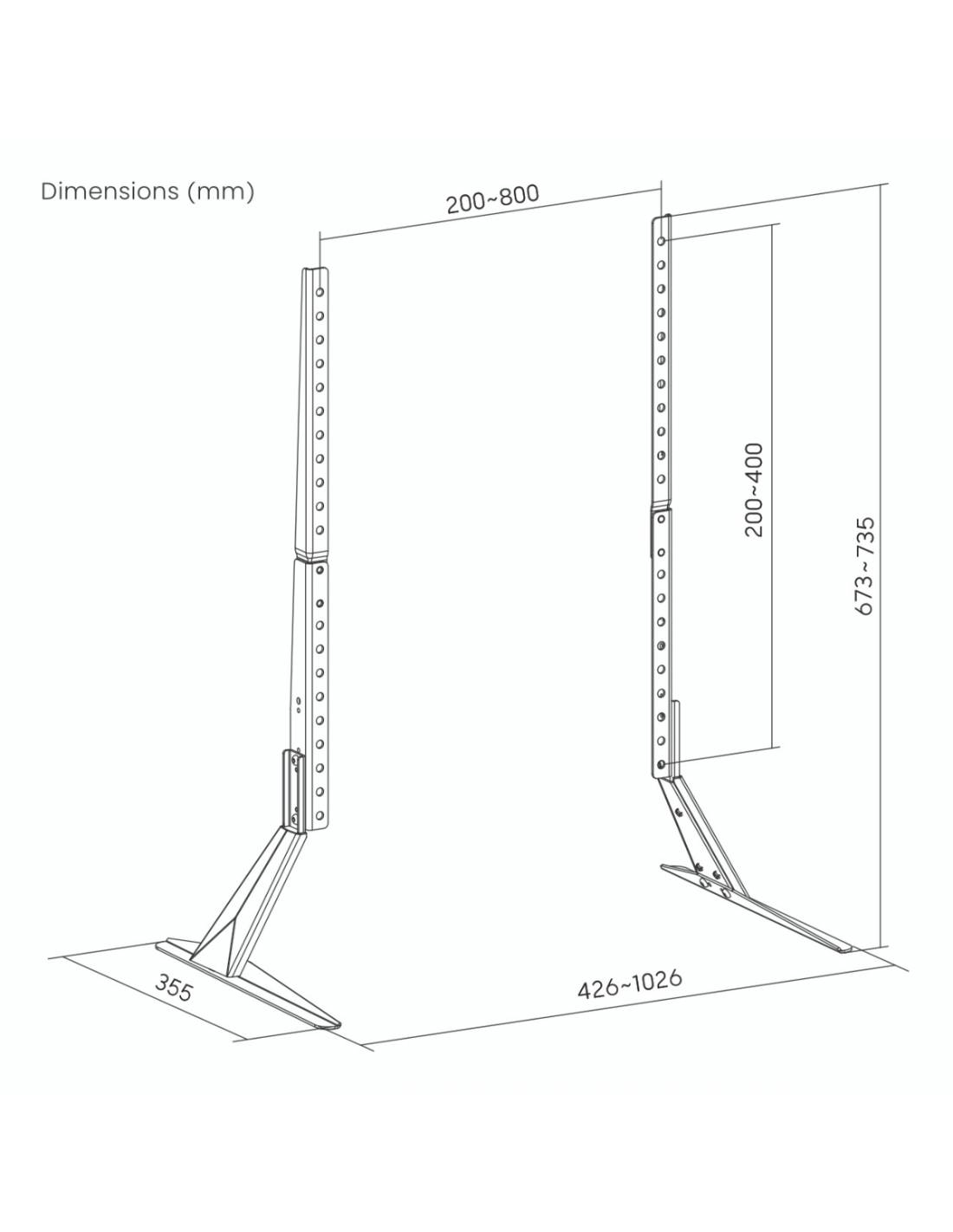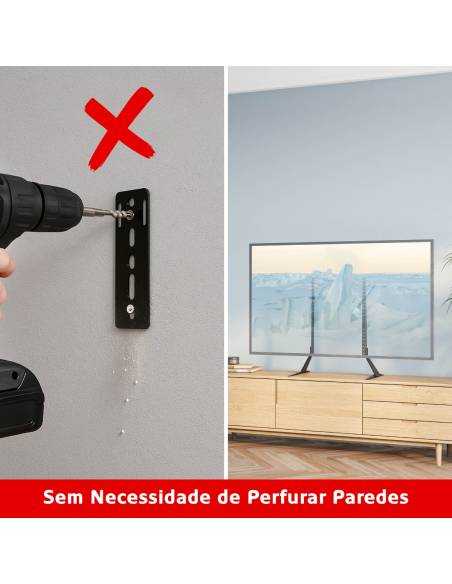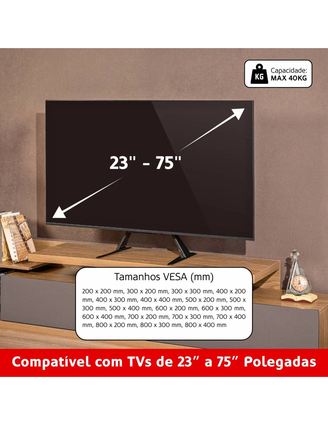 Este suporte de TV foi concebido para garantir estabilidade, elegância e praticidade na instalação de televisores entre 23” e 75”. Com uma estrutura metálica robusta, padrão VESA universal até 800x400 mm e capacidade máxima de 40 kg, é a solução perfeita para quem procura segurança e flexibilidade na montagem da TV, sem necessidade de perfurar paredes.