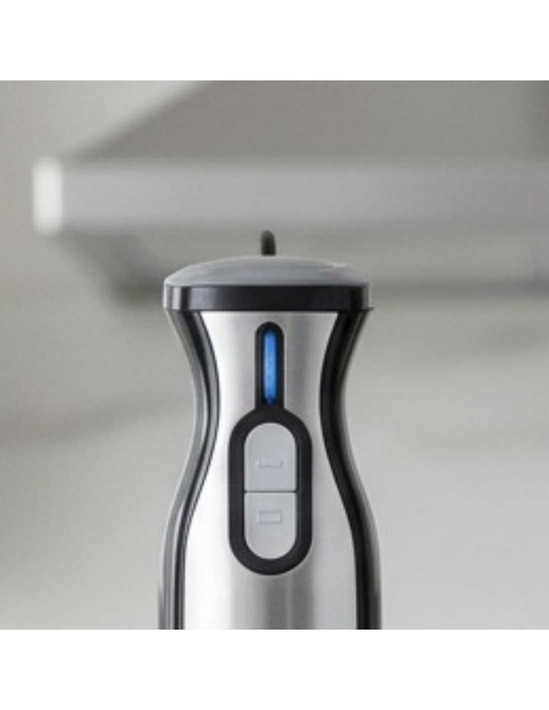 Através dos dois seletores de velocidade, detém o controlo absoluto sobre a textura final das suas preparações. O indicador LED de funcionamento em azul confere um toque de modernidade e sofisticação, sinalizando que o equipamento está pronto para transformar os seus ingredientes em pratos de excelência.